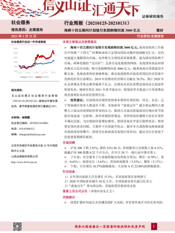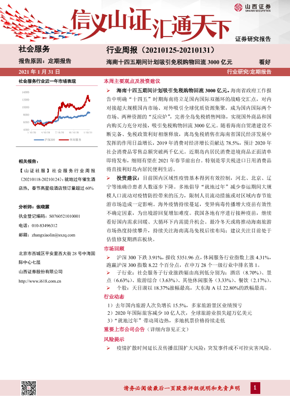 【山西证券】【20210131】社会服务行业周报:海南十四五期间计划吸引免税购物回流3000亿元-9页
