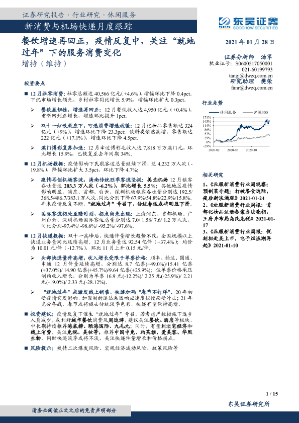 【东吴证券】【20210128】新消费与机场快递月度跟踪:餐饮增速再回正,疫情反复中,关注“就地过年”下的服务消费变化-15页