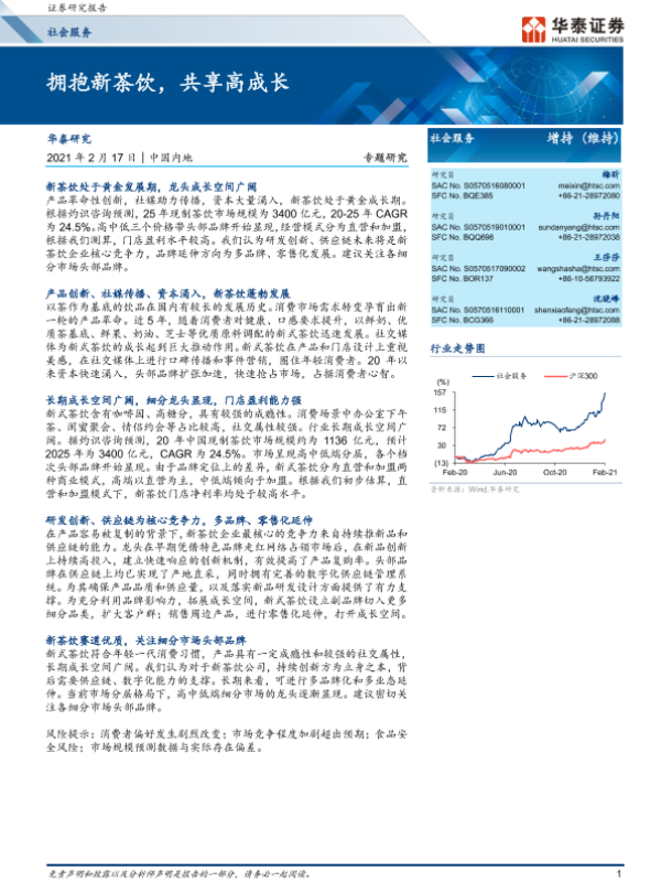 【华泰证券】【20210217】社会服务专题研究:拥抱新茶饮,共享高成长-29页