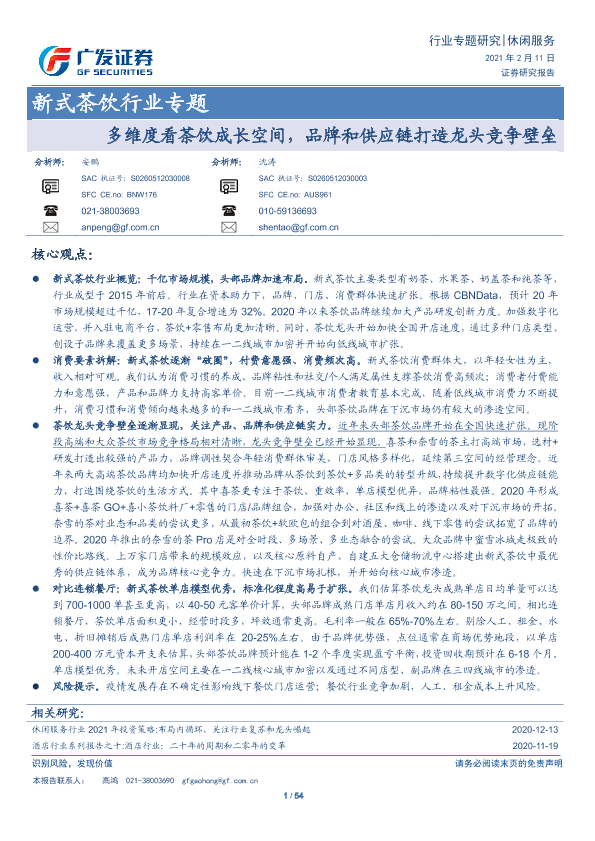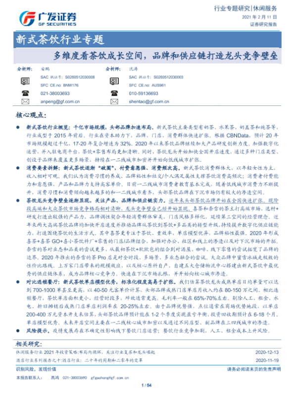 【广发证券】【20210211】新式茶饮行业专题:多维度看茶饮成长空间,品牌和供应链打造龙头竞争壁垒-54页