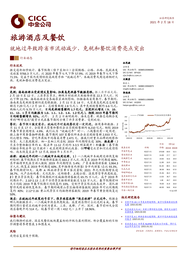【中金公司】【20210218】旅游酒店及餐饮:就地过年致跨省市流动减少,免税和餐饮消费亮点突出-6页