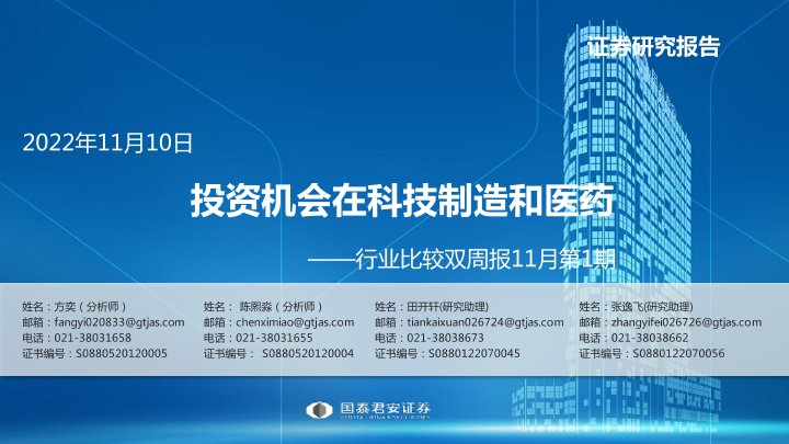 【国泰君安证券】【20221110】行业比较双周报11月第1期:投资机会在科技制造和医药-35页