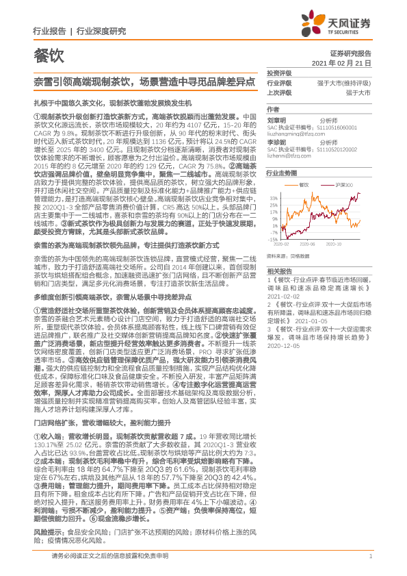 【天风证券】【20210221】餐饮行业深度研究:奈雪引领高端现制茶饮,场景营造中寻觅品牌差异点-29页