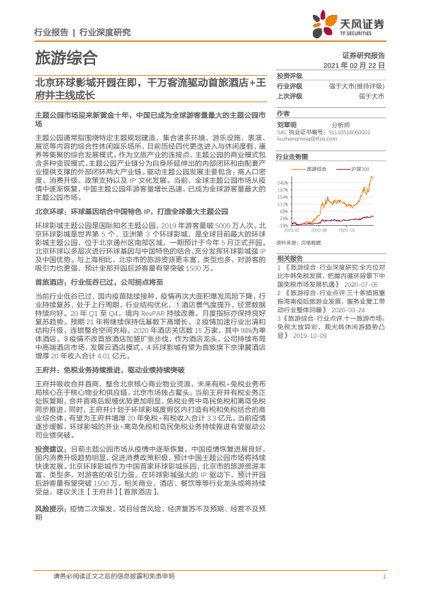 【天风证券】【20210222】旅游综合行业深度研究:北京环球影城开园在即,千万客流驱动首旅酒店+王府井主线成长-52页