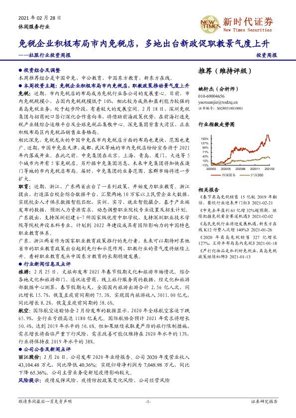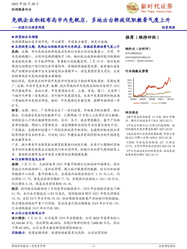 【新时代证券】【20210228】社服行业投资周报:免税企业积极布局市内免税店,多地出台新政促职教景气度上升-16页
