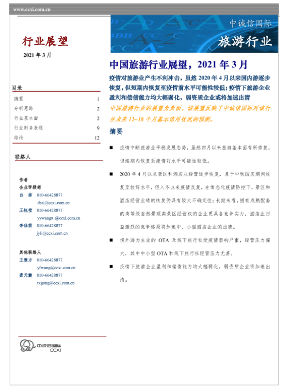 【中诚信国际】【202103】中国旅游行业展望-2页