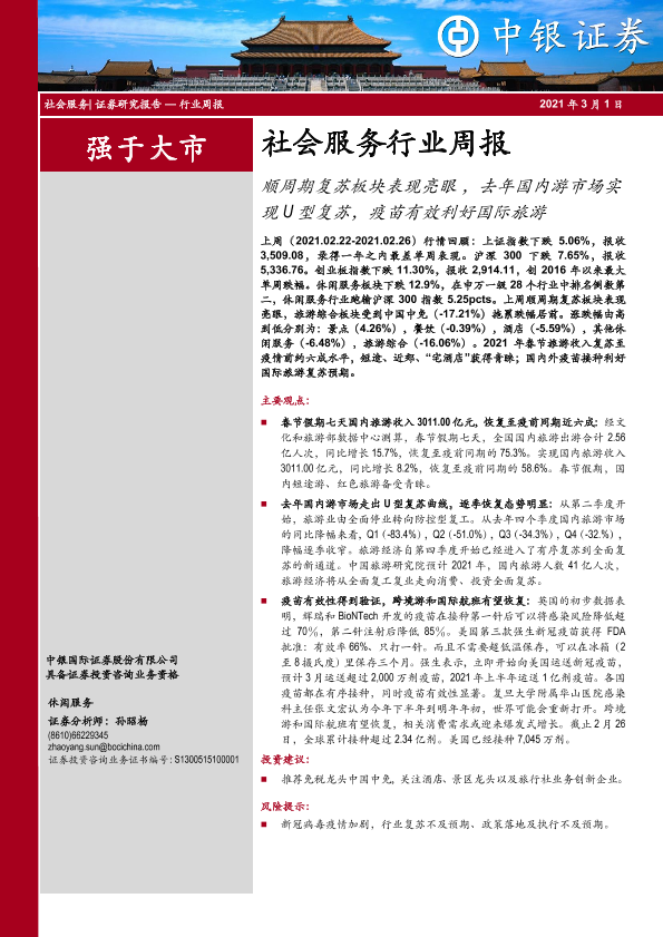 【中银证券】【20210301】社会服务行业周报:顺周期复苏板块表现亮眼-18页