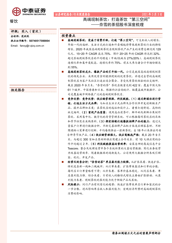 【中泰证券】【20210303】高端现制茶饮:打造茶饮“第三空间”-23页