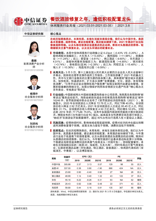 【中信证券】【20210308】休闲服务行业周报:餐饮酒旅修复之年,逢低积极配置龙头-13页