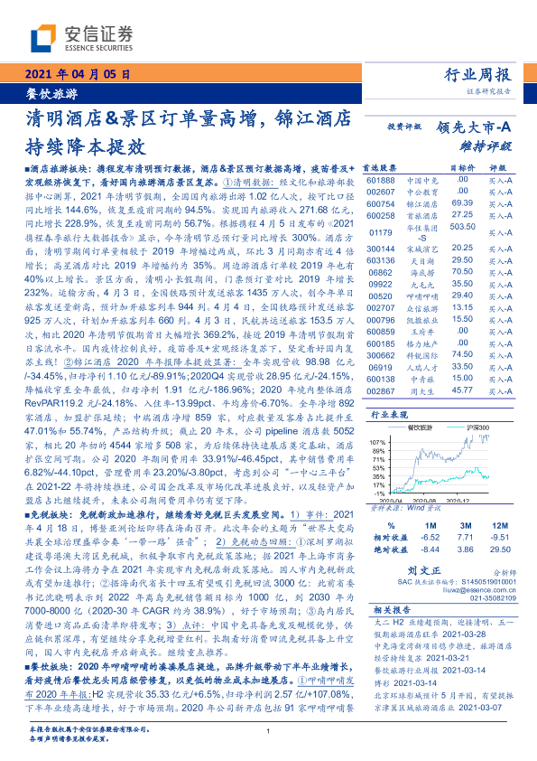 【安信证券】【20210405】餐饮旅游行业周报:清明酒店&景区订单量高增,锦江酒店持续降本提效-12页