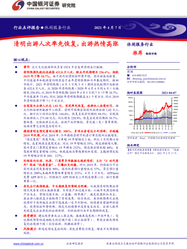【银河证券】【20210407】休闲服务行业点评报告:清明出游人次率先恢复,出游热情高涨-2页