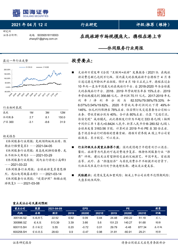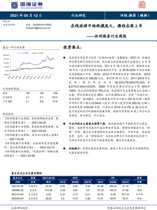 【国海证券】【20210412】休闲服务行业周报:在线旅游市场规模庞大,携程在港上市-10页