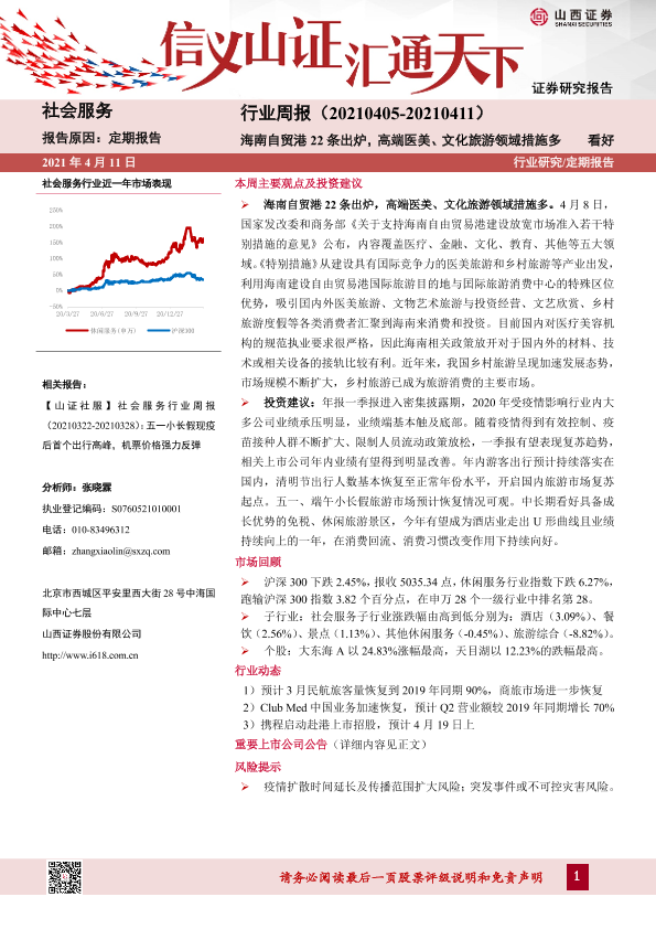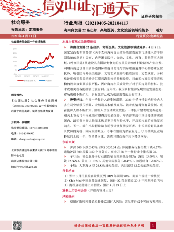 【山西证券】【20210411】社会服务行业周报:海南自贸港22条出炉,高端医美、文化旅游领域措施多-9页