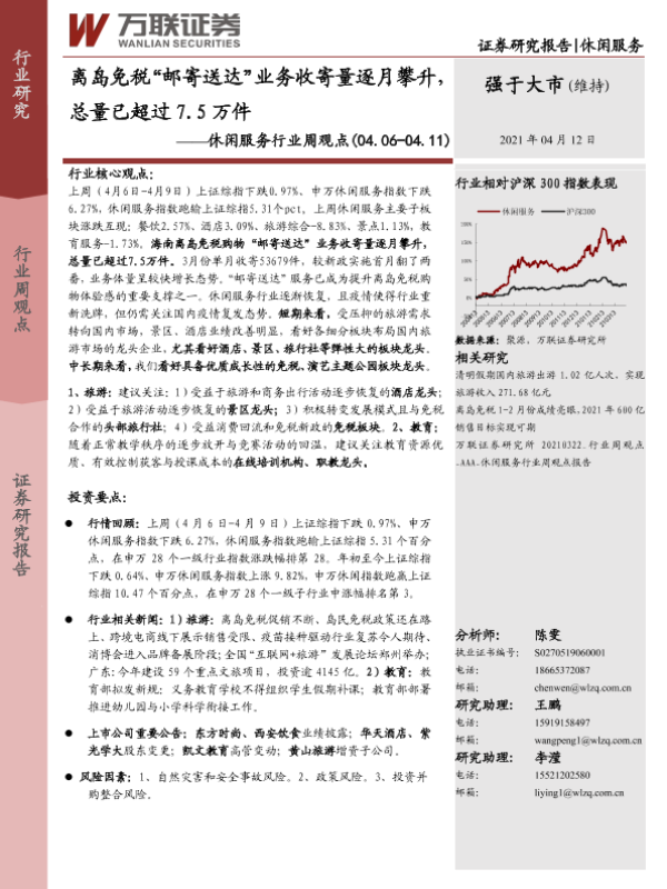 【万联证券】【20210412】离岛免税“邮寄送达”业务收寄量逐月攀升,总量已超过7.5万件-13页