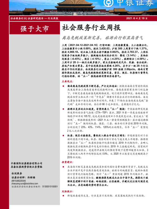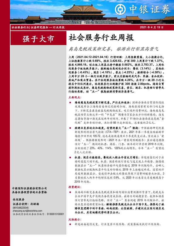 【中银证券】【20210419】社会服务行业周报:离岛免税政策渐完善,旅游出行彰显高景气-21页