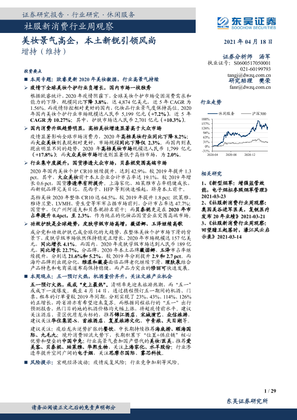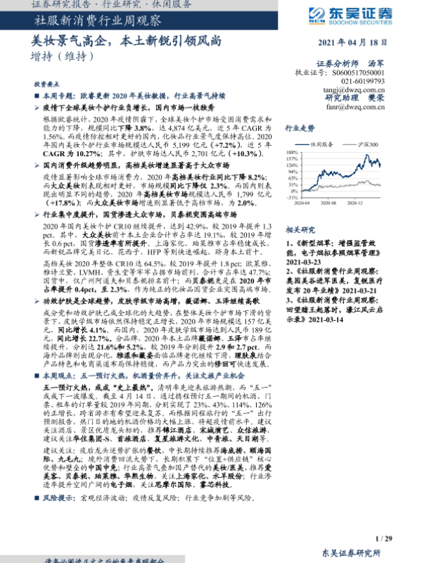 【东吴证券】【20210418】社服新消费行业周观察:美妆景气高企,本土新锐引领风尚-29页