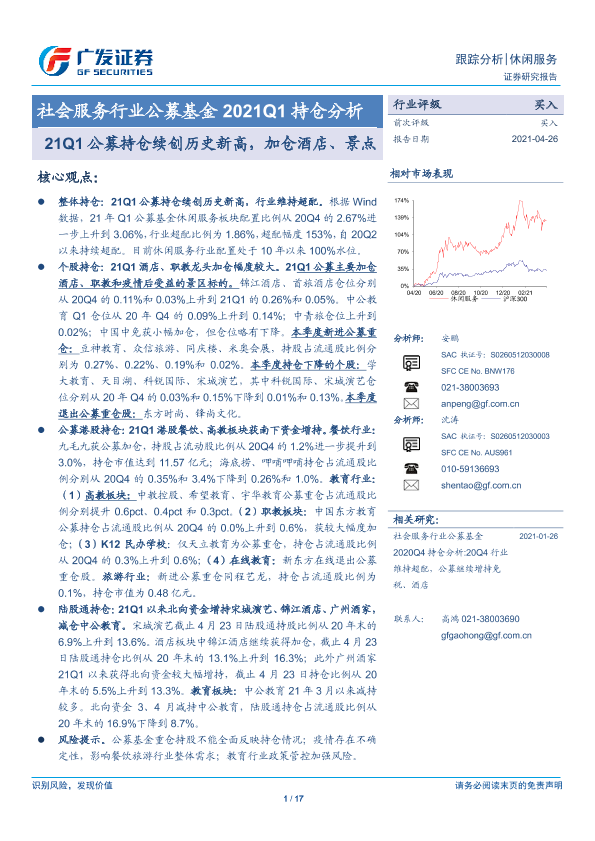 【广发证券】【20210426】社会服务行业公募基金2021Q1持仓分析-17页