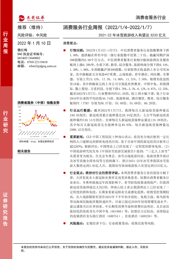 【东莞证券】【20220110】消费服务行业周报:2021-22年冰雪旅游收入有望达3233亿元-10页