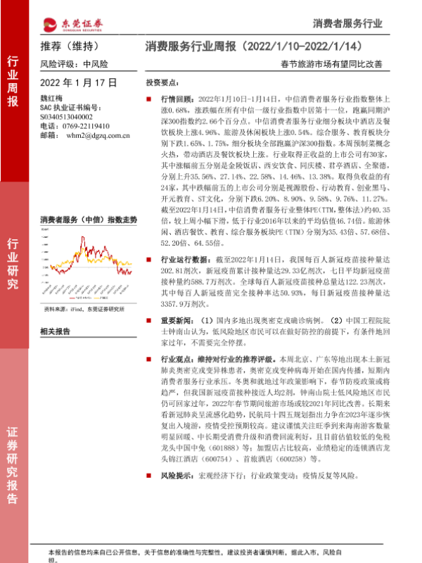 【东莞证券】【20220117】消费服务行业周报:春节旅游市场有望同比改善-9页