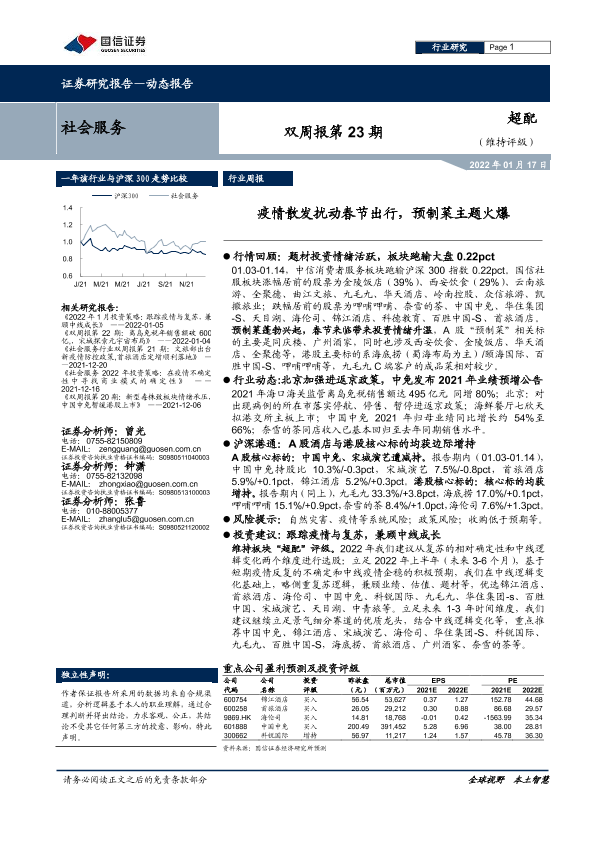 【国信证券】【20220117】社会服务双周报第23期:疫情散发扰动春节出行,预制菜主题火爆-11页