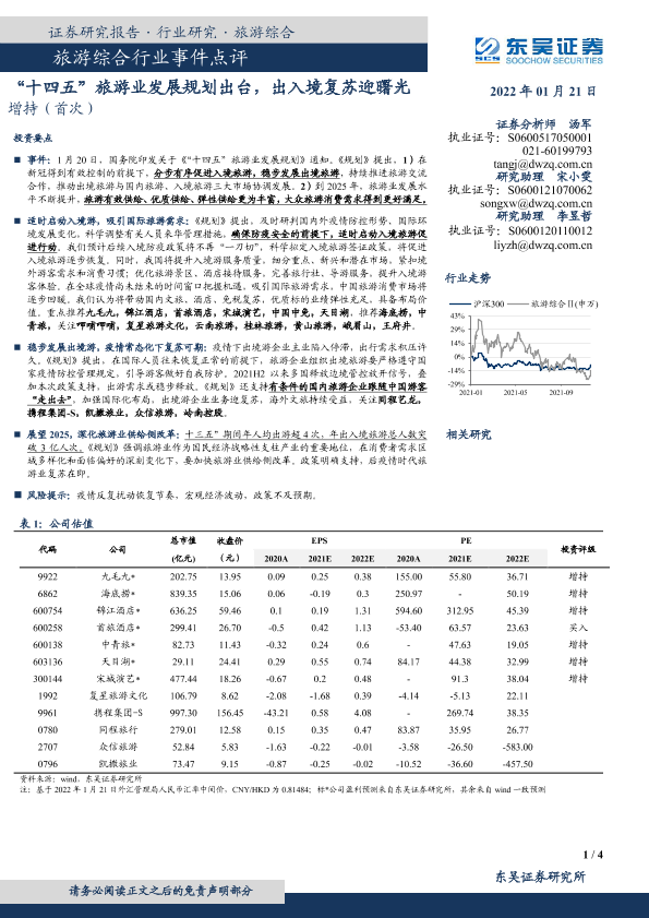 【东吴证券】【20220121】旅游综合行业事件点评:“十四五”旅游业发展规划出台,出入境复苏迎曙光-4页