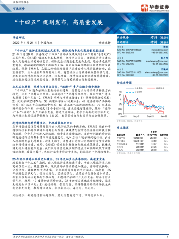 【华泰证券】【20220121】社会服务动态点评:“十四五”规划发布,高质量发展-6页