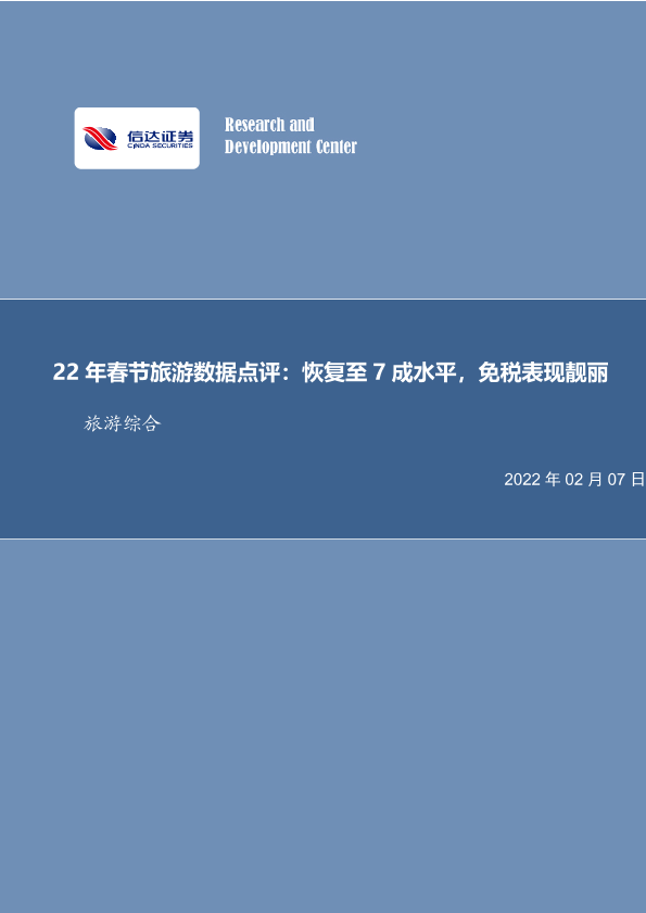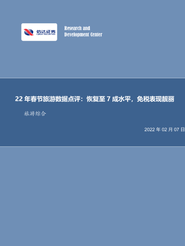 【信达证券】【20220207】22年春节旅游数据点评:恢复至7成水平,免税表现靓丽-8页