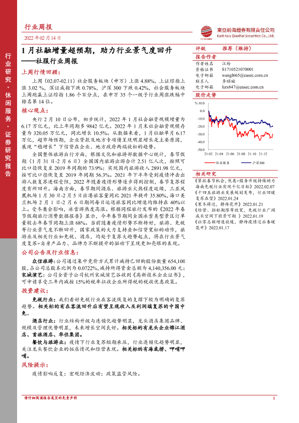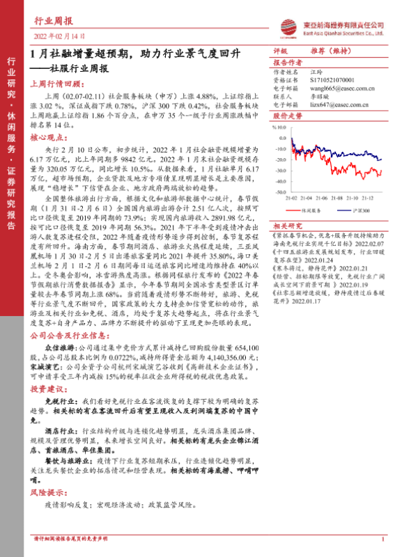 免税行业 旅游出行 社服行业 社融增量 行业景气度