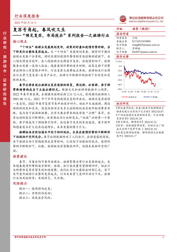 【东亚前海证券】【20220214】预见复苏,布局疫后——旅游行业:复苏号角起,春风吹又生-27页