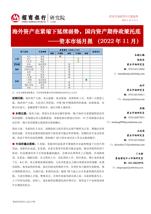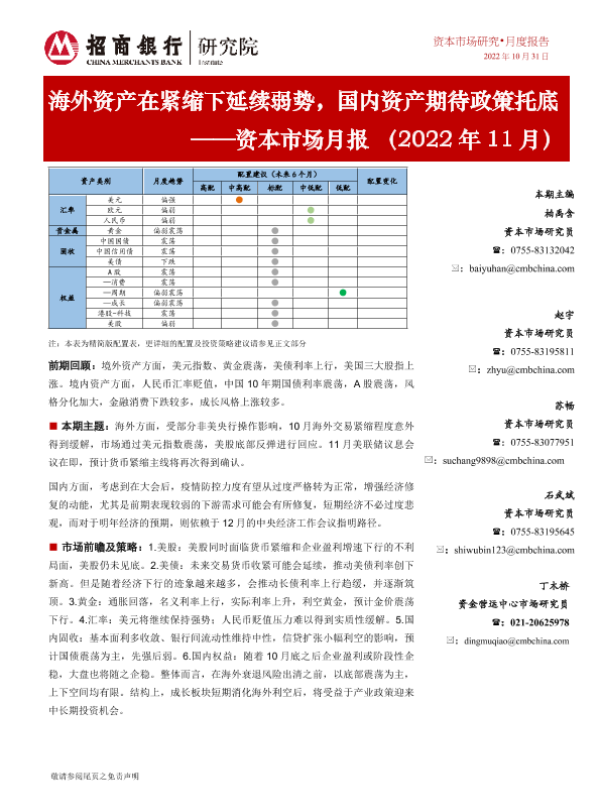 【招商银行】【20221031】资本市场月报(2022年11月):海外资产在紧缩下延续弱势,国内资产期待政策托底-29页