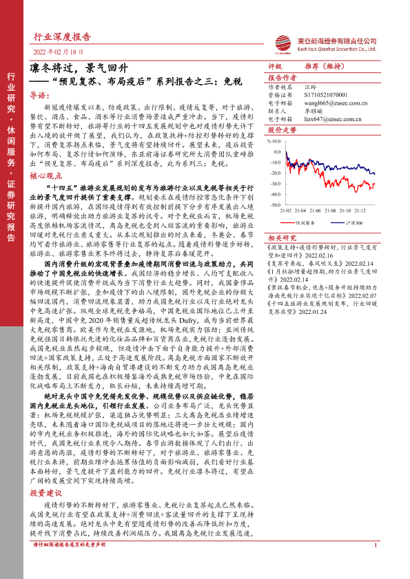 【东亚前海证券】【20220218】预见复苏、布局疫后系列报告之三:免税-凛冬将过,景气回升-28页