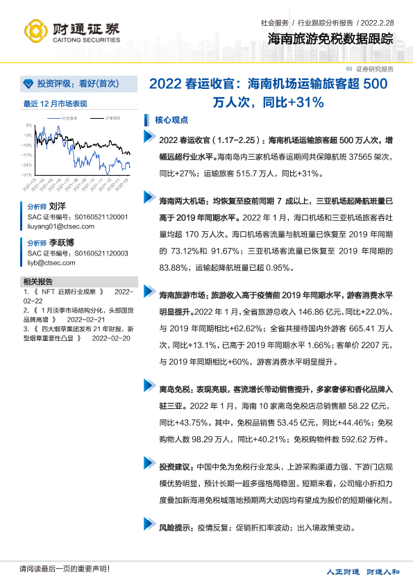 【财通证券】【20220228】海南旅游免税数据跟踪:2022春运收官:海南机场运输旅客超500万人次-10页