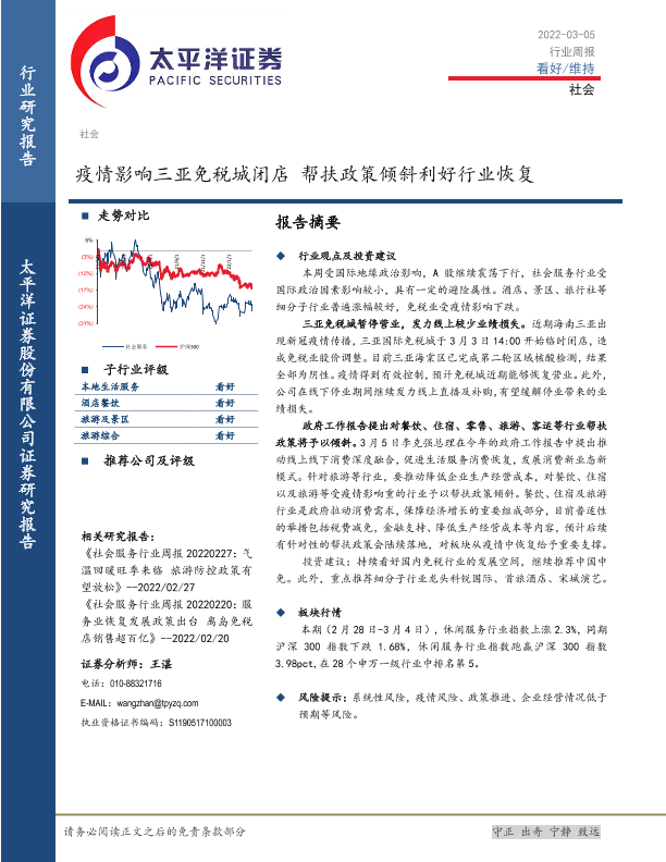 【太平洋证券】【20220305】疫情影响三亚免税城闭店帮扶政策倾斜利好行业恢复-11页