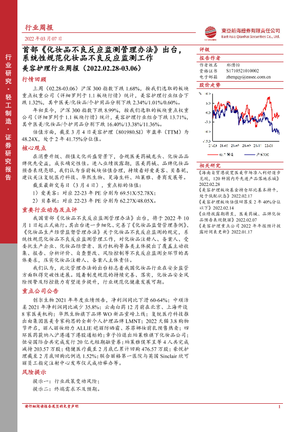 【东亚前海证券】【20220307】首部《化妆品不良反应监测管理办法》出台,系统性规范化妆品不良反应监测工作-14页