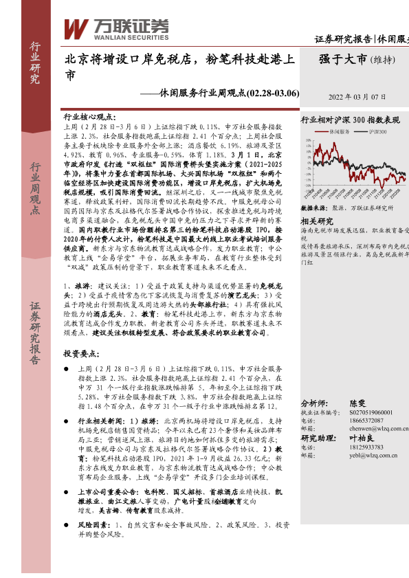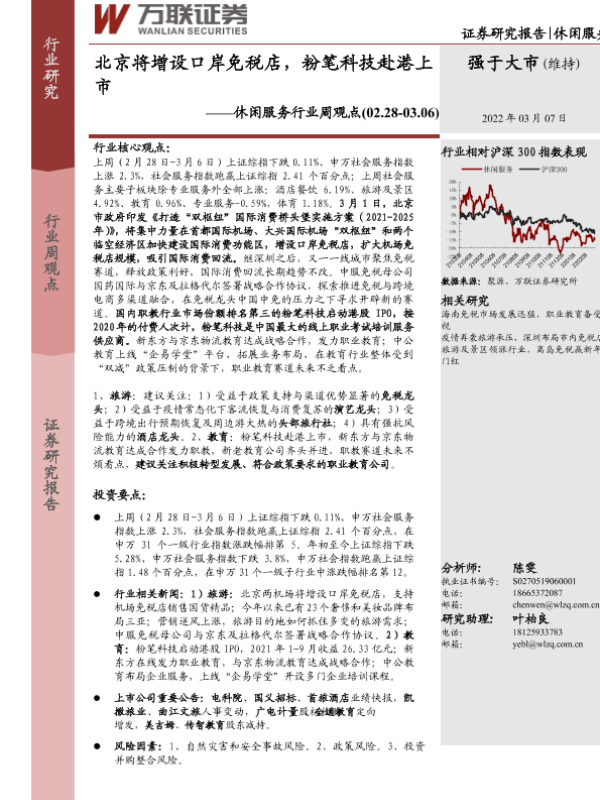 【万联证券】【20220307】北京将增设口岸免税店,粉笔科技赴港上市-9页
