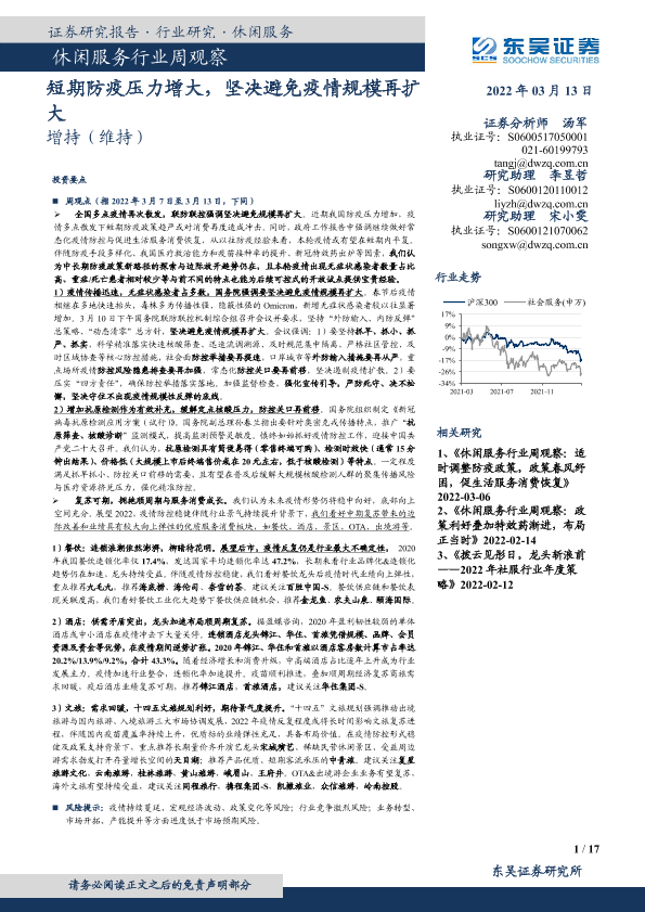【东吴证券】【20220313】休闲服务行业周观察:短期防疫压力增大,坚决避免疫情规模再扩大-17页