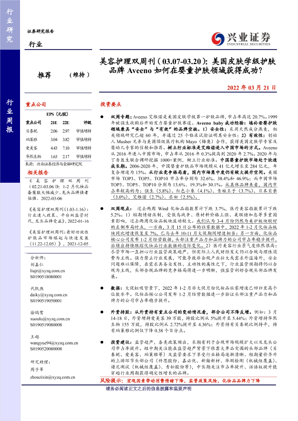 【兴业证券】【20220321】美容护理双周刊:美国皮肤学级护肤品牌Aveeno如何在婴童护肤领域获得成功?-19页