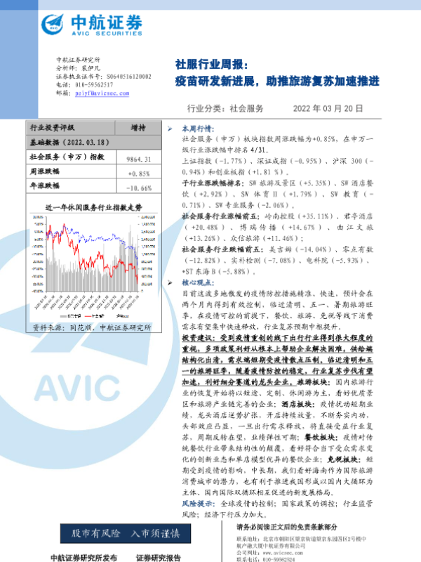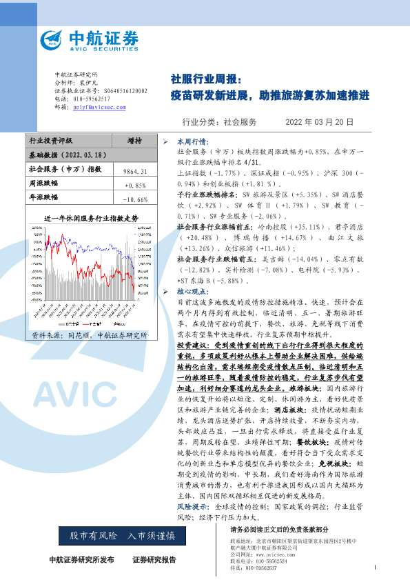 【中航证券】【20220320】社服行业周报:疫苗研发新进展,助推旅游复苏加速推进-9页