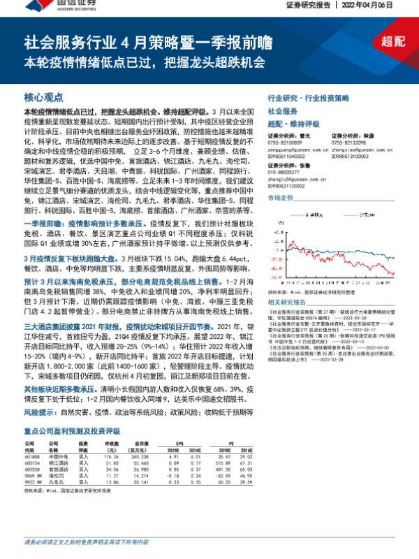 【国信证券】【20220406】社会服务行业4月策略暨一季报前瞻-18页