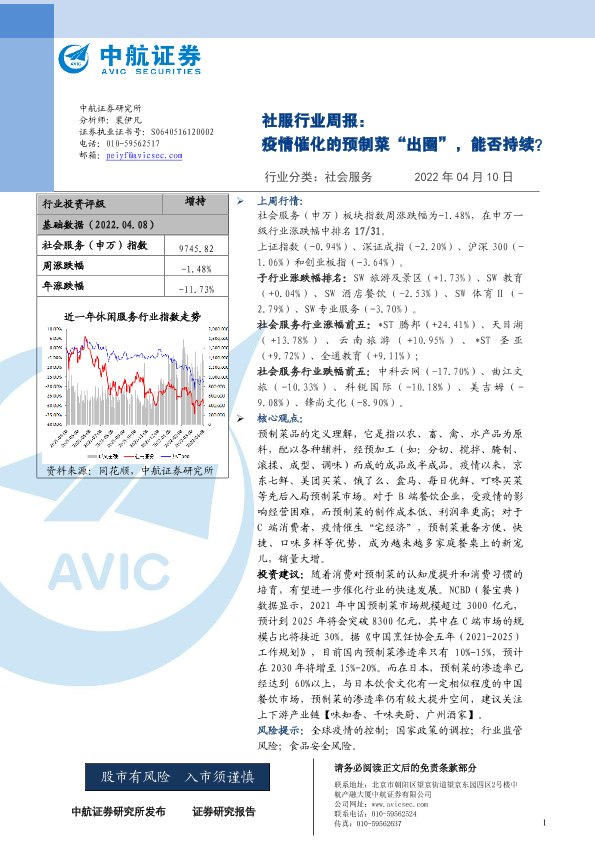 【中航证券】【20220410】社服行业周报:疫情催化的预制菜“出圈”,能否持续?-8页