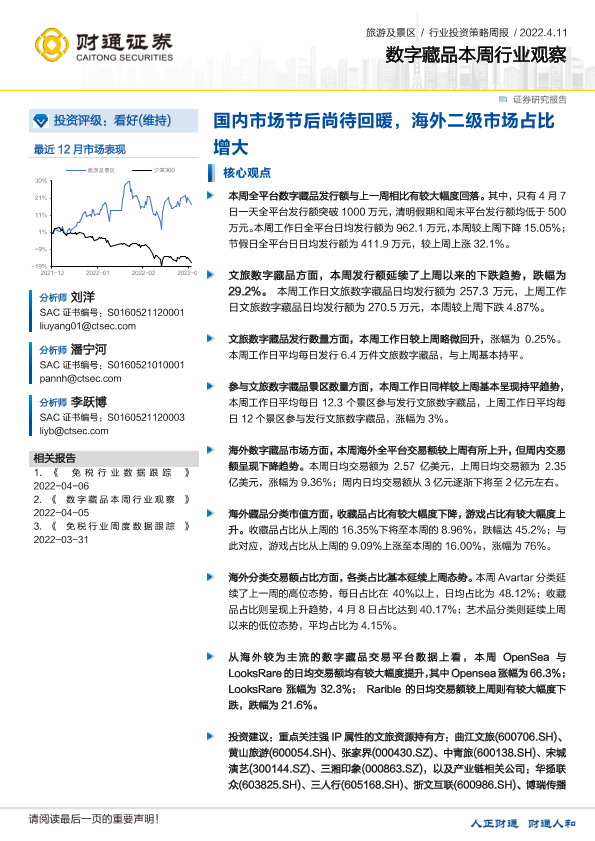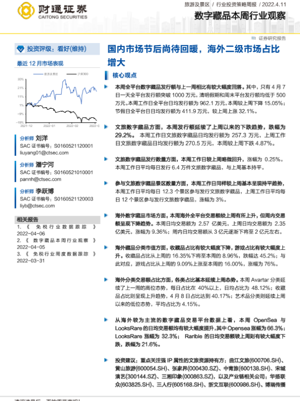 【财通证券】【20220411】旅游及景区行业投资策略周报:数字藏品本周行业观察-13页