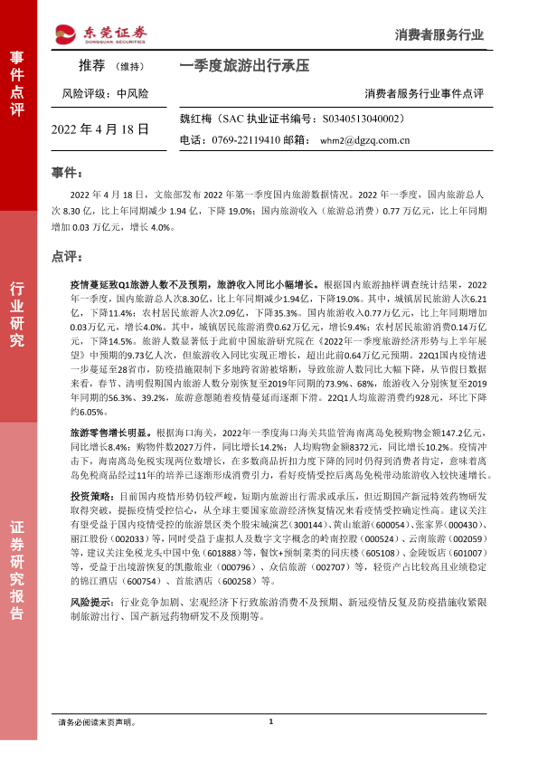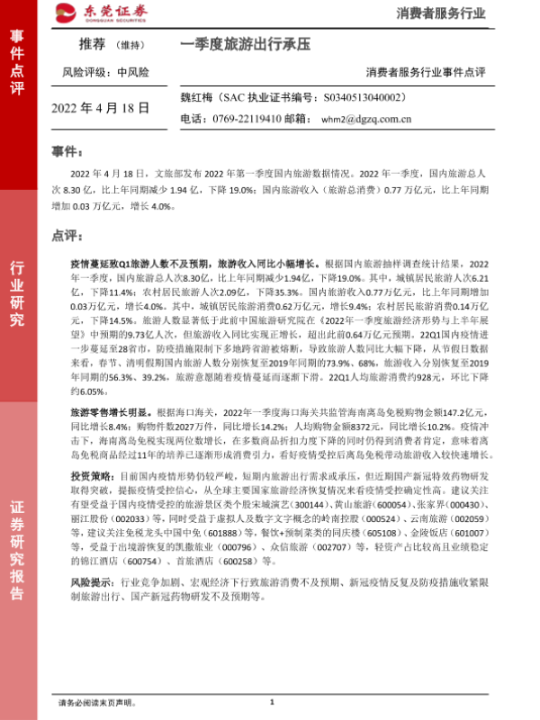 【东莞证券】【20220418】一季度旅游出行承压-2页