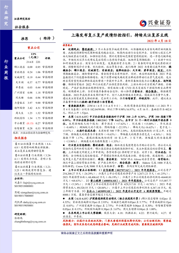 【兴业证券】【20220418】上海发布复工复产疫情防控指引,持续关注复苏主线-17页