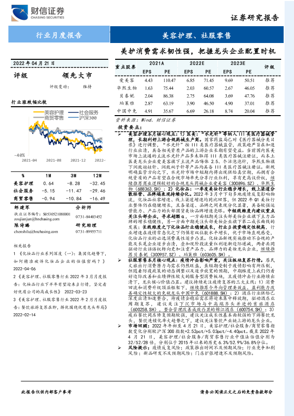 【财信证券】【20220421】美护消费需求韧性强,把握龙头企业配置时机-12页