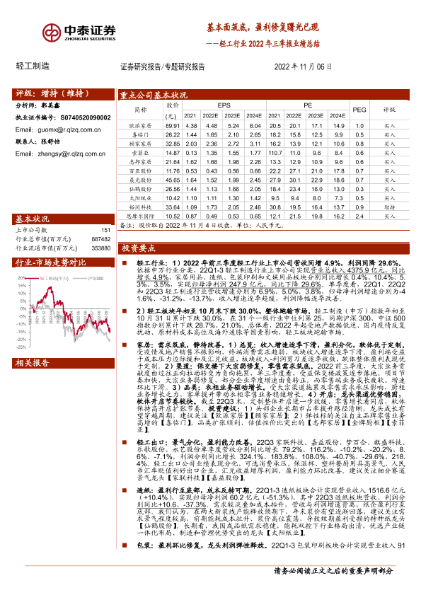 【中泰证券】【20221106】轻工行业2022年三季报业绩总结:基本面筑底,盈利修复曙光已现-37页