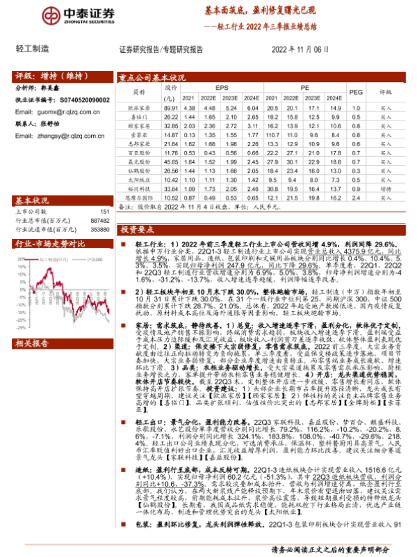 三季报 业绩总结 市场表现 盈利修复 轻工行业