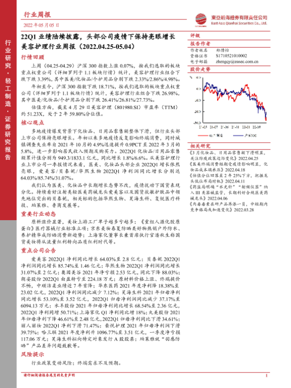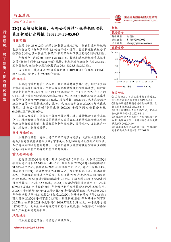 【东亚前海证券】【20220505】22Q1业绩陆续披露,头部公司疫情下保持亮眼增长-13页