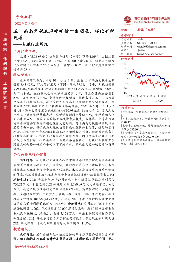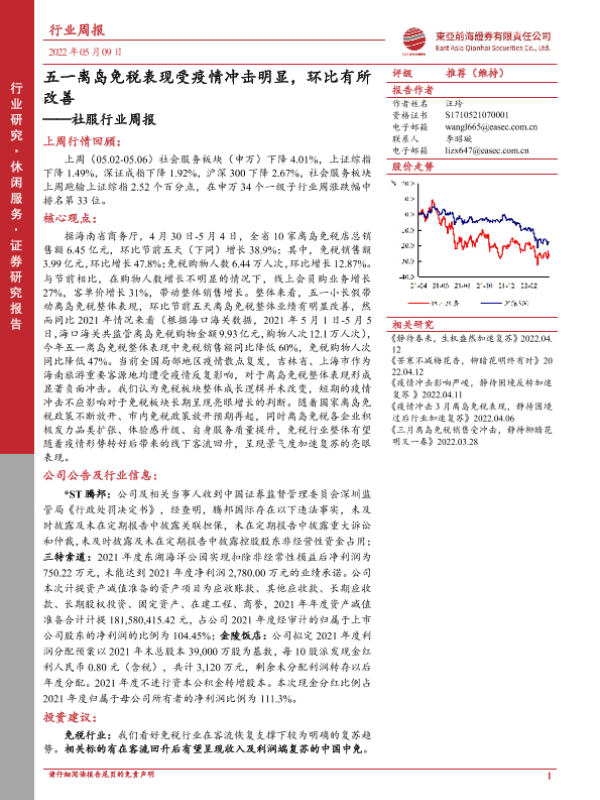 【东亚前海证券】【20220506】五一离岛免税表现受疫情冲击明显,环比有所改善-17页