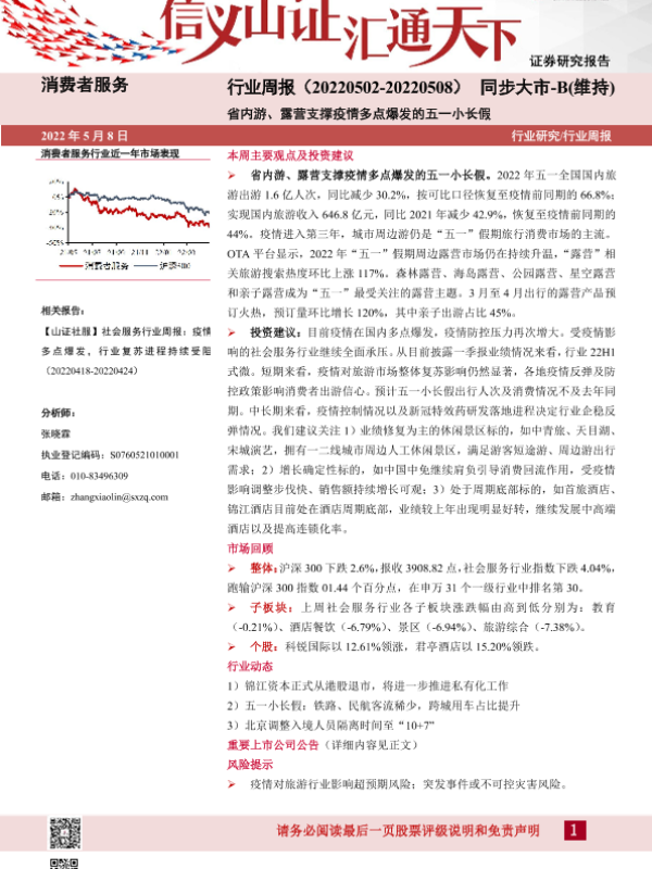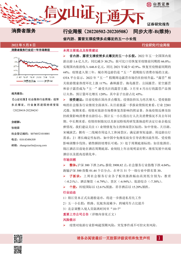 【山西证券】【20220508】消费者服务行业周报:省内游、露营支撑疫情多点爆发的五一小长假-11页