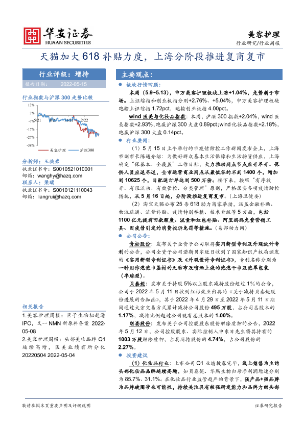 【华安证券】【20220515】美容护理行业周报:天猫加大618补贴力度,上海分阶段推进复商复市-19页